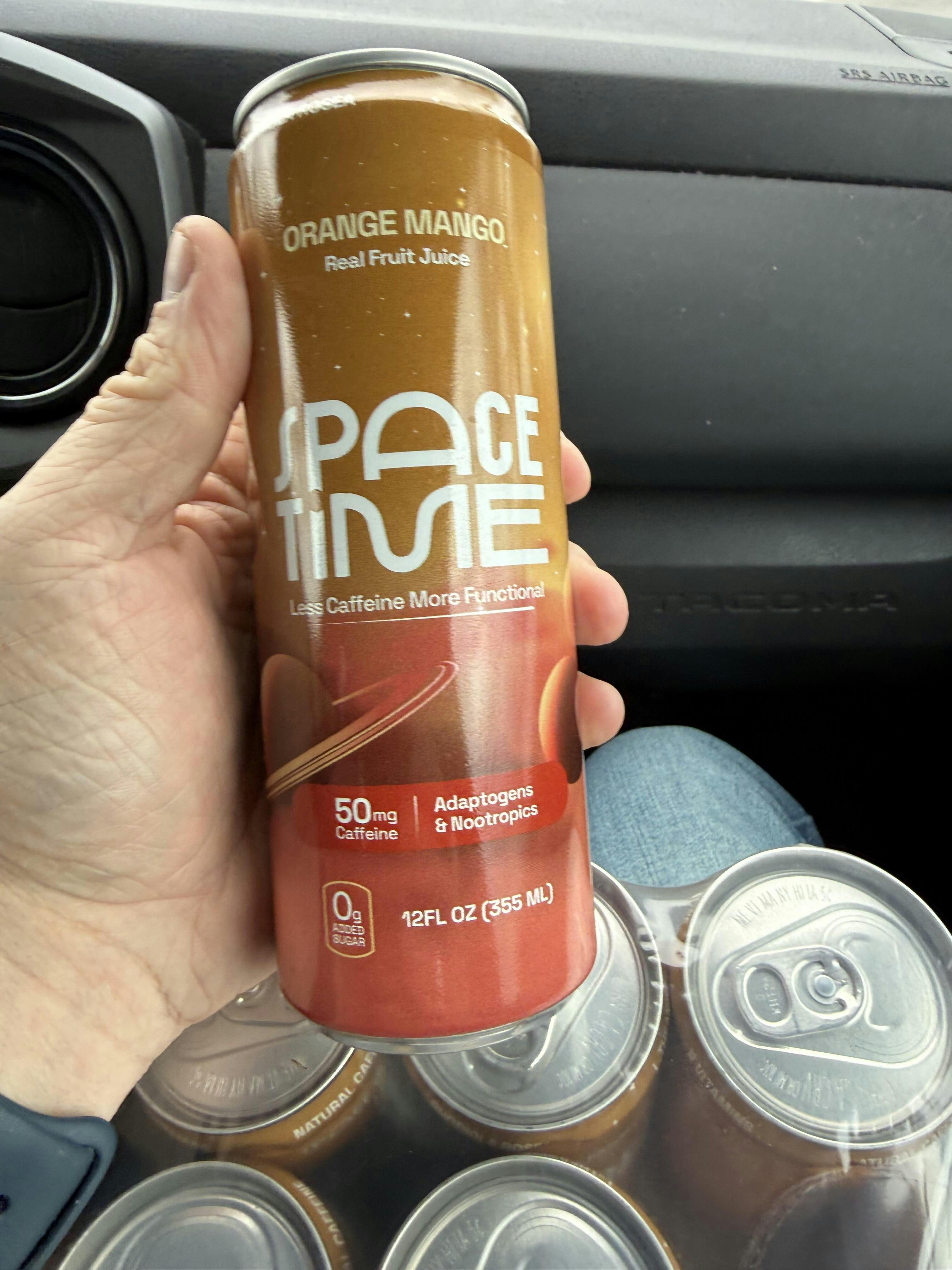 Nope, SpaceTime is not an energy drink. With just 50 mg of natural caffeine, equivalent to half the caffeine in a cup of coffee, SpaceTime is made for coffee enthusiasts, computer-bound professionals, and students seeking a fruity soda without sacrificing their daily coffee fix.