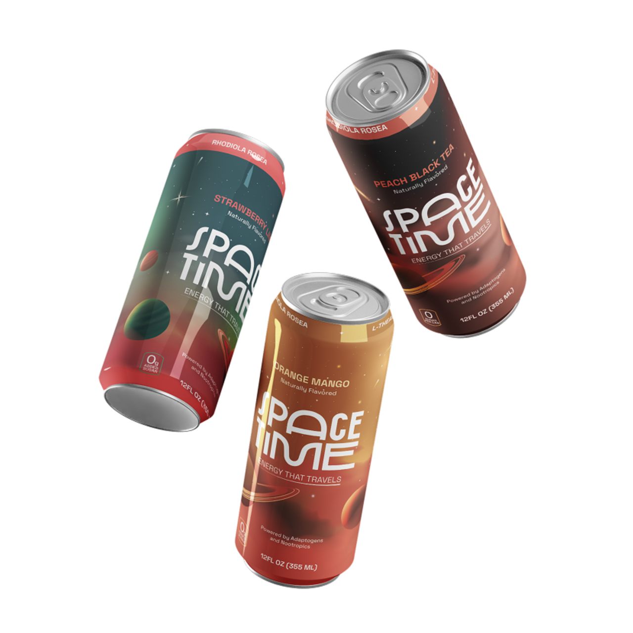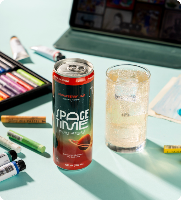 SpaceTime is a lightly fizzy, naturally flavored drink with 50mg of caffeine, designed to give you a clean, smooth boost—without the sugar, artificial flavors, or crash of traditional energy drinks.
